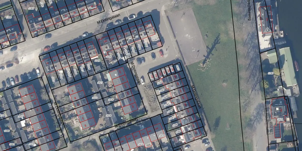 M.Dotingalaan 148 is gelegen op kadastraal perceel WEE02E1037. Deze kadastrale aanduiding is uniek en wordt gebruikt door het Kadaster om eigendomsrechten en andere zakelijke rechten vast te leggen. Het perceel maakt onderdeel uit van de kadastrale gemeente Weesp.