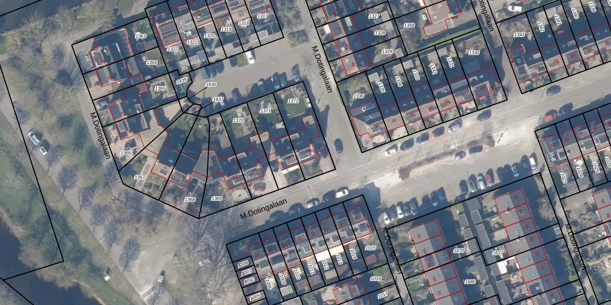 Het perceel waarop M.Dotingalaan 19 staat heeft een oppervlakte van 322 m². Dit is een groot perceel. De perceeloppervlakte wordt geregistreerd door het Kadaster. Gedetailleerde informatie over de maten van dit perceel kunt u vinden in het rapport Kadastrale kaart met maatvoering van M.Dotingalaan 19.