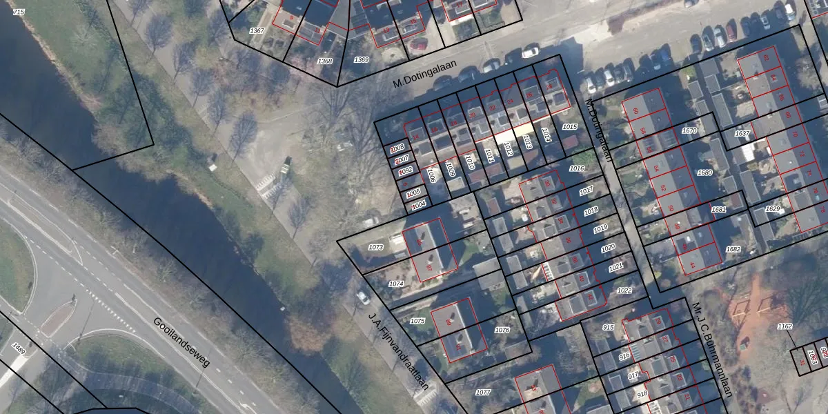 M.Dotingalaan 2 is gelegen op kadastraal perceel WEE02E1004. Deze kadastrale aanduiding is uniek en wordt gebruikt door het Kadaster om eigendomsrechten en andere zakelijke rechten vast te leggen. Het perceel maakt onderdeel uit van de kadastrale gemeente Weesp.