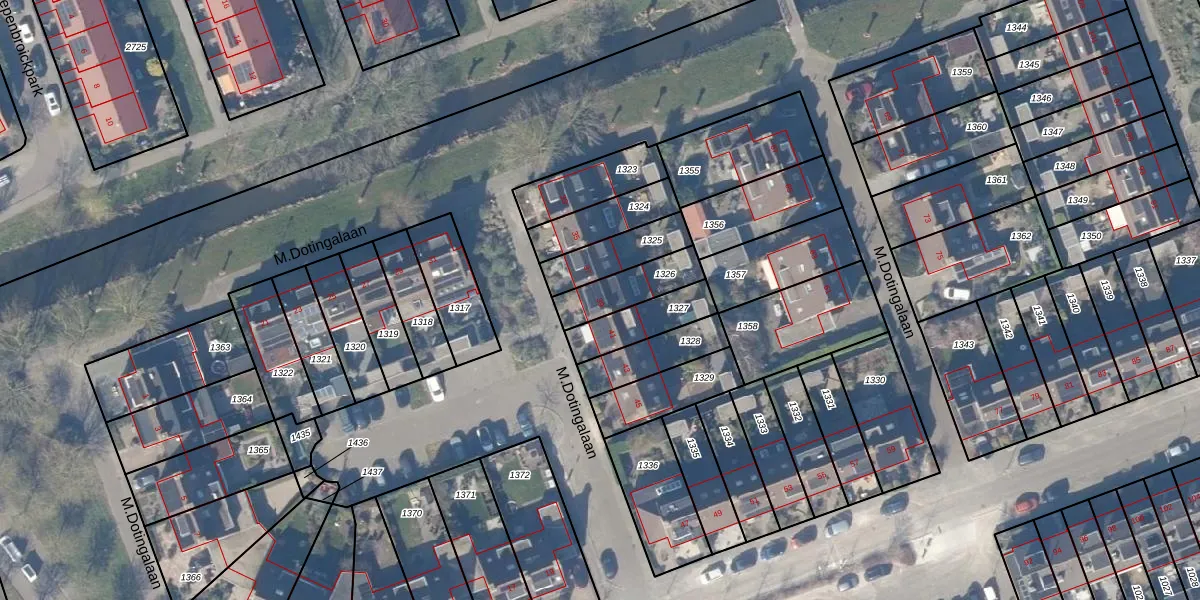 M.Dotingalaan 39 is gelegen op kadastraal perceel WEE02E1326. Deze kadastrale aanduiding is uniek en wordt gebruikt door het Kadaster om eigendomsrechten en andere zakelijke rechten vast te leggen. Het perceel maakt onderdeel uit van de kadastrale gemeente Weesp.