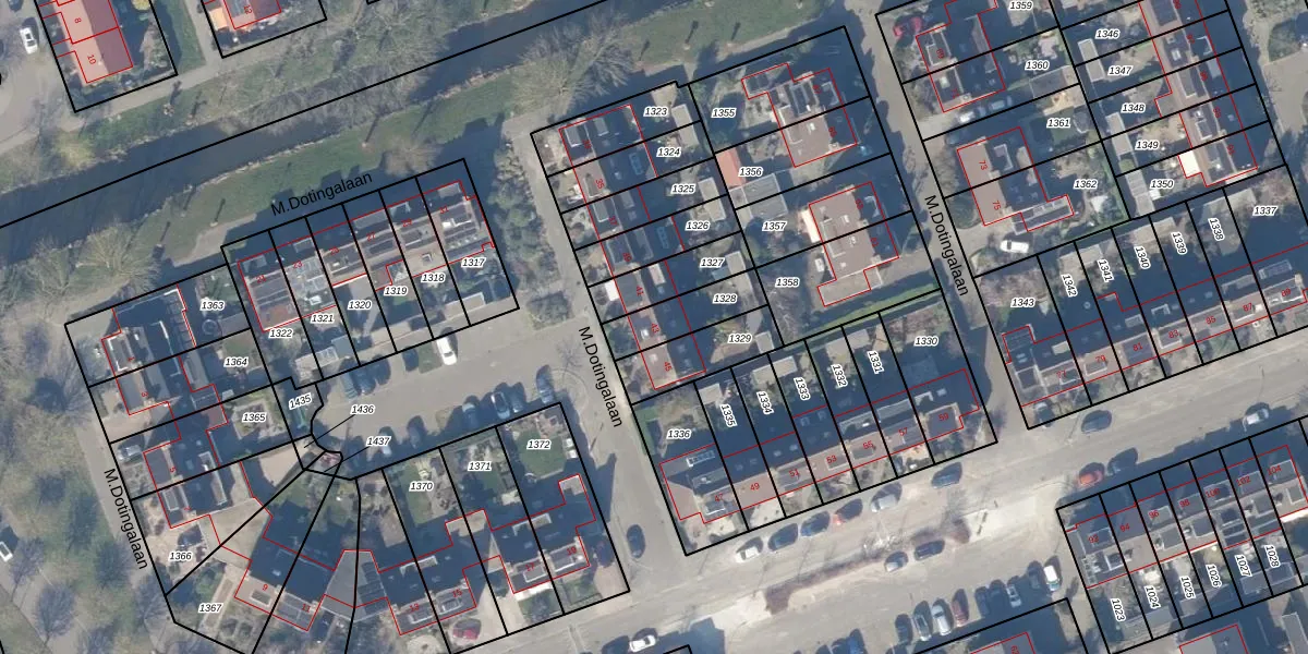 Het perceel waarop M.Dotingalaan 43 staat heeft een oppervlakte van 151 m². Dit is een middelgroot perceel. De perceeloppervlakte wordt geregistreerd door het Kadaster. Gedetailleerde informatie over de maten van dit perceel kunt u vinden in het rapport Kadastrale kaart met maatvoering van M.Dotingalaan 43.