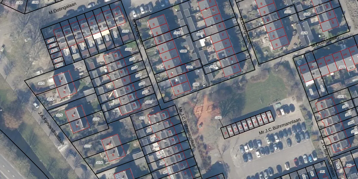 Het perceel waarop M.Dotingalaan 44 staat heeft een oppervlakte van 510 m². Dit is een groot perceel. De perceeloppervlakte wordt geregistreerd door het Kadaster. Gedetailleerde informatie over de maten van dit perceel kunt u vinden in het rapport Kadastrale kaart met maatvoering van M.Dotingalaan 44.
