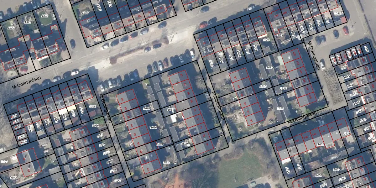 M.Dotingalaan 66 is gelegen op kadastraal perceel WEE02E1680. Deze kadastrale aanduiding is uniek en wordt gebruikt door het Kadaster om eigendomsrechten en andere zakelijke rechten vast te leggen. Het perceel maakt onderdeel uit van de kadastrale gemeente Weesp.