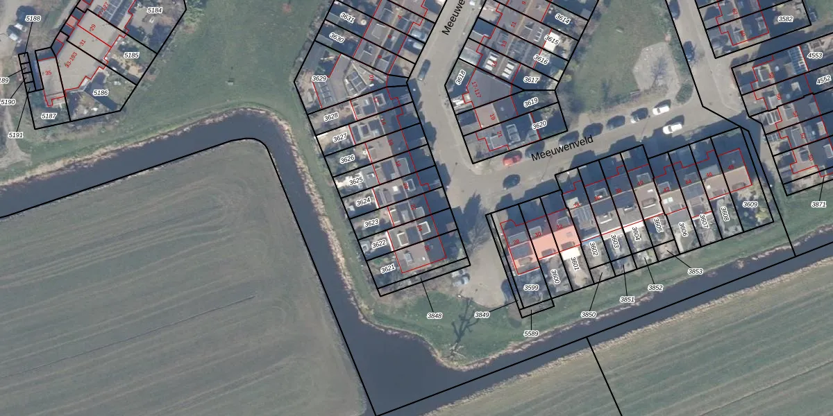 Meeuwenveld 22 is gelegen op kadastraal perceel WEE02B3623. Deze kadastrale aanduiding is uniek en wordt gebruikt door het Kadaster om eigendomsrechten en andere zakelijke rechten vast te leggen. Het perceel maakt onderdeel uit van de kadastrale gemeente Weesp.