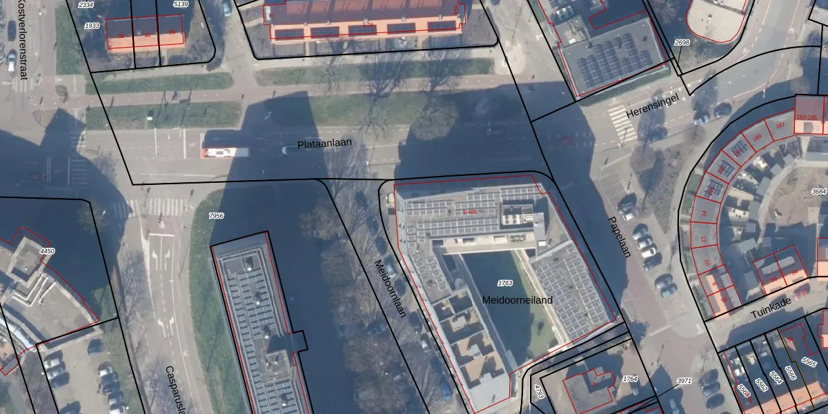 Het perceel waarop Meidoorneiland 208 staat heeft een oppervlakte van 2195 m². Dit is een zeer groot perceel. De perceeloppervlakte wordt geregistreerd door het Kadaster. Gedetailleerde informatie over de maten van dit perceel kunt u vinden in het rapport Kadastrale kaart met maatvoering van Meidoorneiland 208.