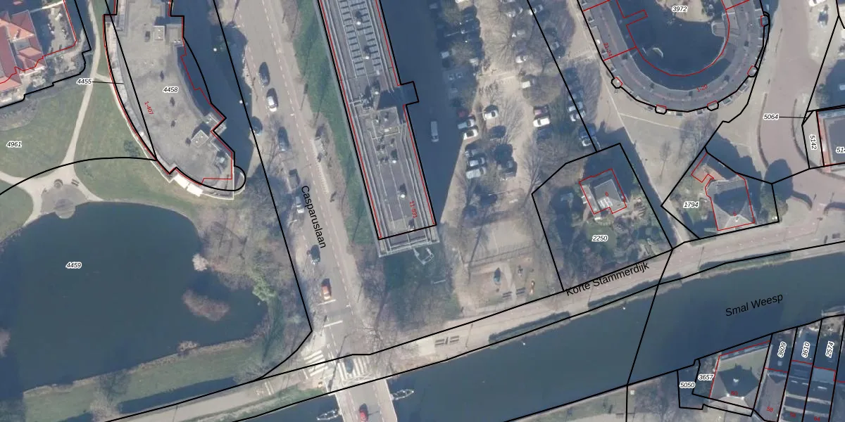 Het adres is gelegen op perceel 2682 in de sectie B en de kadastrale gemeente Weesp. De kadastrale aanduiding is aldus WEE02-B-2682. Het perceel is kleiner dan gemiddeld in Weesp. Het perceel is 1948 m² groot, terwijl het gemiddelde ligt op 2523,05 m². De grootste perceeloppervlakte in de kadastrale gemeente is 27,8 ha. De kleinste oppervlakte bedraagt 0 m². Er zijn 154 adressen aanwezig op het perceel. In de Basisregistratie Kadaster (BRK) werden de grenzen van het perceel geregistreerd op 01-11-2004.