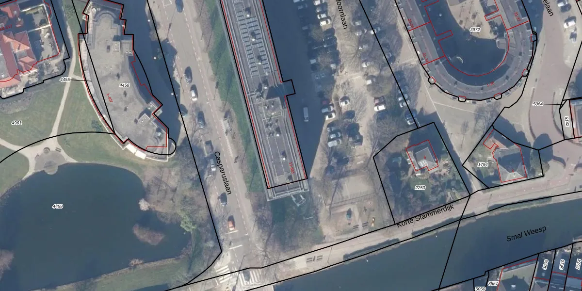 Het adres is gelegen op perceel 2682 in de sectie B en de kadastrale gemeente Weesp. De kadastrale aanduiding is aldus WEE02-B-2682. Het perceel is kleiner dan gemiddeld in Weesp. Het perceel is 1948 m² groot, terwijl het gemiddelde ligt op 2518,84 m². De grootste perceeloppervlakte in de kadastrale gemeente is 27,8 ha. De kleinste oppervlakte bedraagt 0 m². Er zijn 154 adressen aanwezig op het perceel. De huidige grenzen van het perceel zijn digitaal in de Basisregistratie Kadaster (BRK) geregistreerd op 01-11-2004.