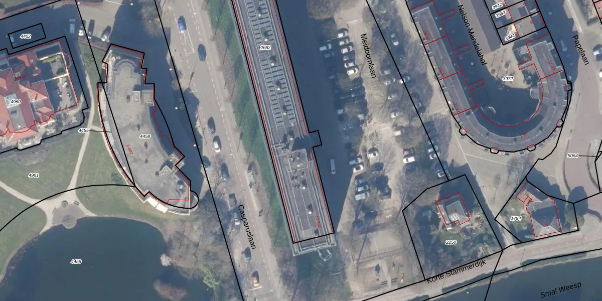 Het adres is gelegen op perceel 2682 in de sectie B en de kadastrale gemeente Weesp. De kadastrale aanduiding is aldus WEE02-B-2682. Het perceel is kleiner dan gemiddeld in Weesp. Het perceel is 1948 m² groot, terwijl het gemiddelde ligt op 2518,58 m². De grootste perceeloppervlakte in de kadastrale gemeente is 27,8 ha. De kleinste oppervlakte bedraagt 0 m². Op het perceel liggen in totaal 154 adressen. De huidige grenzen van het perceel zijn digitaal in de Basisregistratie Kadaster (BRK) geregistreerd op 01-11-2004.