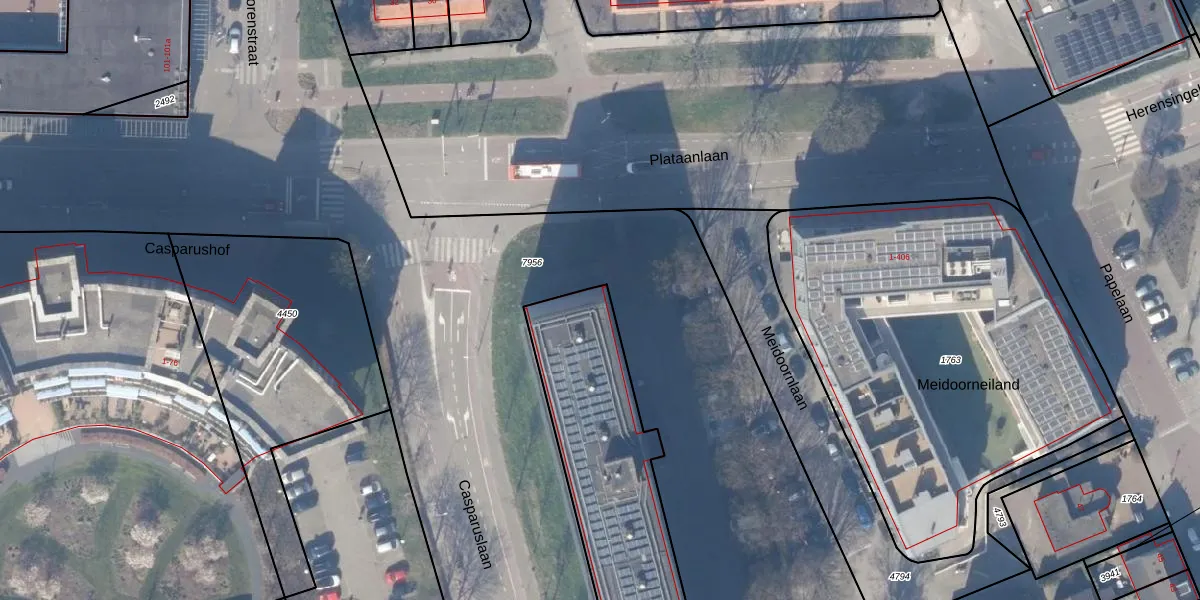 Het perceel waarop Meidoornlaan 65 staat heeft een oppervlakte van 1948 m². Dit is een zeer groot perceel. De perceeloppervlakte wordt geregistreerd door het Kadaster. Gedetailleerde informatie over de maten van dit perceel kunt u vinden in het rapport Kadastrale kaart met maatvoering van Meidoornlaan 65.