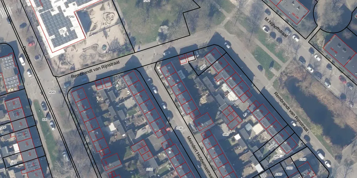 Het perceel waarop Meindert Hobbemastraat 20 staat heeft een oppervlakte van 3015 m². Dit is een zeer groot perceel. De perceeloppervlakte wordt geregistreerd door het Kadaster. Gedetailleerde informatie over de maten van dit perceel kunt u vinden in het rapport Kadastrale kaart met maatvoering van Meindert Hobbemastraat 20.