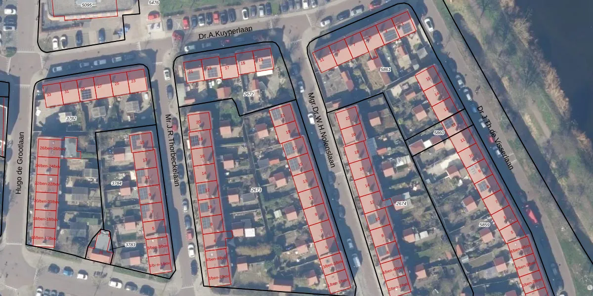 Het perceel waarop Mgr.Dr.W.H.Nolenslaan 17 staat heeft een oppervlakte van 2931 m². Dit is een zeer groot perceel. De perceeloppervlakte wordt geregistreerd door het Kadaster. Gedetailleerde informatie over de maten van dit perceel kunt u vinden in het rapport Kadastrale kaart met maatvoering van Mgr.Dr.W.H.Nolenslaan 17.