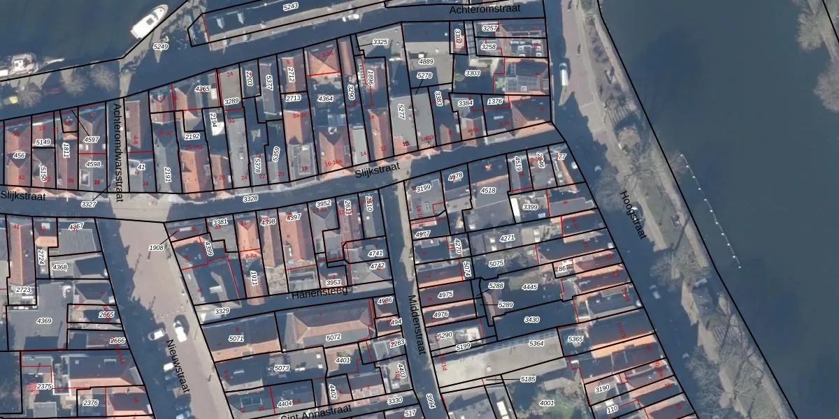 Het perceel waarop Middenstraat 1-a staat heeft een oppervlakte van 87 m². Dit is een klein perceel. De perceeloppervlakte wordt geregistreerd door het Kadaster. Gedetailleerde informatie over de maten van dit perceel kunt u vinden in het rapport Kadastrale kaart met maatvoering van Middenstraat 1-a.
