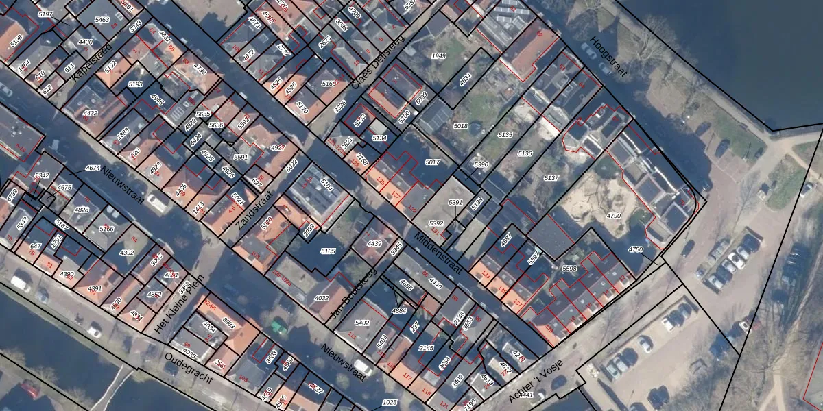 Het perceel waarop Middenstraat 129 staat heeft een oppervlakte van 295 m². Dit is een middelgroot perceel. De perceeloppervlakte wordt geregistreerd door het Kadaster. Gedetailleerde informatie over de maten van dit perceel kunt u vinden in het rapport Kadastrale kaart met maatvoering van Middenstraat 129.