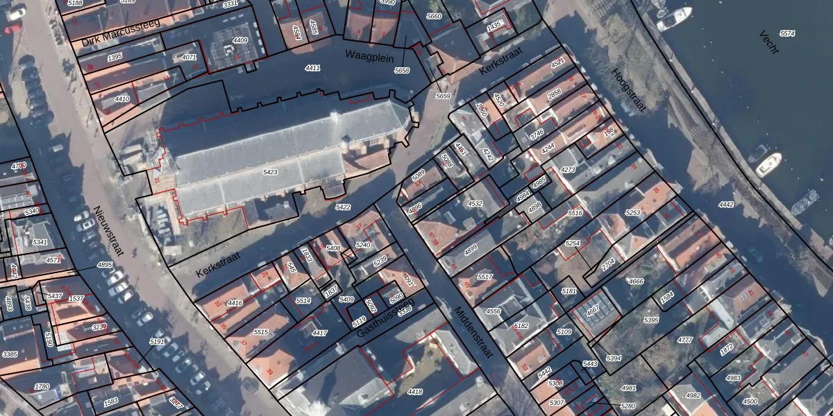 Middenstraat 33 is gelegen op kadastraal perceel WEE02A4896. Deze kadastrale aanduiding is uniek en wordt gebruikt door het Kadaster om eigendomsrechten en andere zakelijke rechten vast te leggen. Het perceel maakt onderdeel uit van de kadastrale gemeente Weesp.