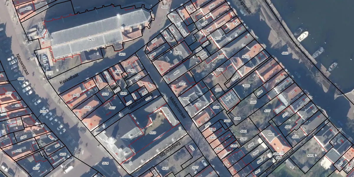 Het perceel waarop Middenstraat 45 staat heeft een oppervlakte van 119 m². Dit is een middelgroot perceel. De perceeloppervlakte wordt geregistreerd door het Kadaster. Gedetailleerde informatie over de maten van dit perceel kunt u vinden in het rapport Kadastrale kaart met maatvoering van Middenstraat 45.