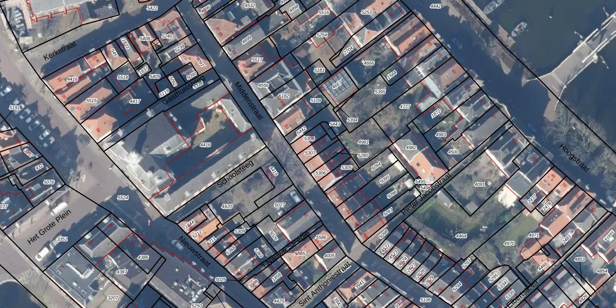 Het perceel waarop Middenstraat 57 staat heeft een oppervlakte van 48 m². Dit is een klein perceel. De perceeloppervlakte wordt geregistreerd door het Kadaster. Gedetailleerde informatie over de maten van dit perceel kunt u vinden in het rapport Kadastrale kaart met maatvoering van Middenstraat 57.
