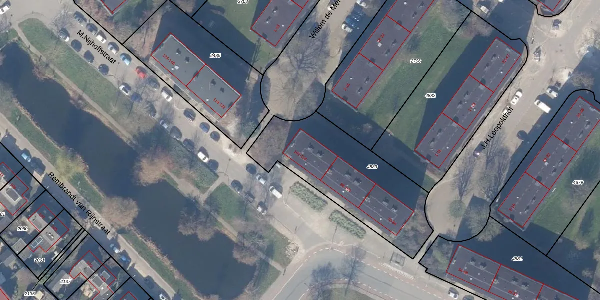 Het perceel waarop M.Nijhoffstraat 112 staat heeft een oppervlakte van 1317 m². Dit is een zeer groot perceel. De perceeloppervlakte wordt geregistreerd door het Kadaster. Gedetailleerde informatie over de maten van dit perceel kunt u vinden in het rapport Kadastrale kaart met maatvoering van M.Nijhoffstraat 112.