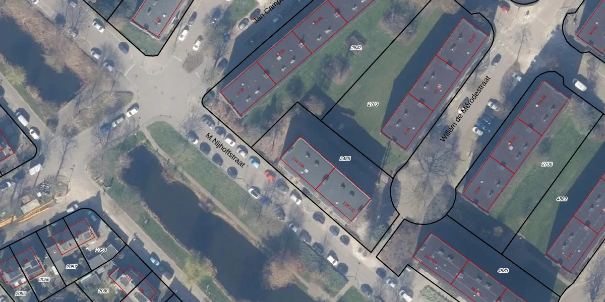 Het perceel waarop M.Nijhoffstraat 146 staat heeft een oppervlakte van 1113 m². Dit is een zeer groot perceel. De perceeloppervlakte wordt geregistreerd door het Kadaster. Gedetailleerde informatie over de maten van dit perceel kunt u vinden in het rapport Kadastrale kaart met maatvoering van M.Nijhoffstraat 146.