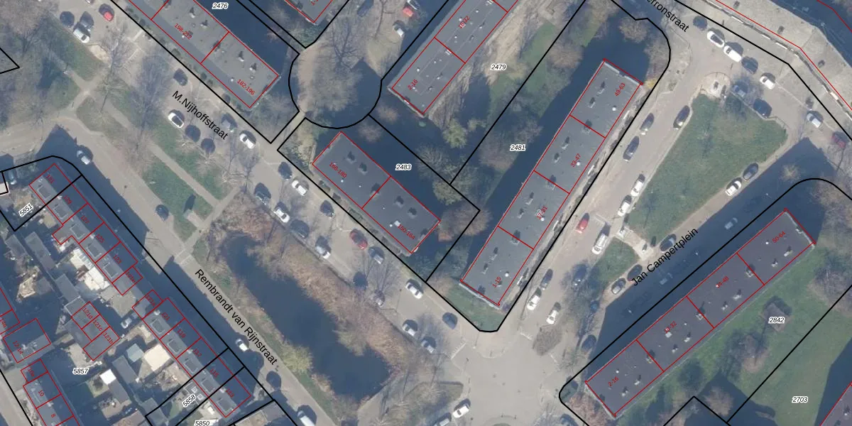 Het perceel waarop M.Nijhoffstraat 156 staat heeft een oppervlakte van 873 m². Dit is een groot perceel. De perceeloppervlakte wordt geregistreerd door het Kadaster. Gedetailleerde informatie over de maten van dit perceel kunt u vinden in het rapport Kadastrale kaart met maatvoering van M.Nijhoffstraat 156.