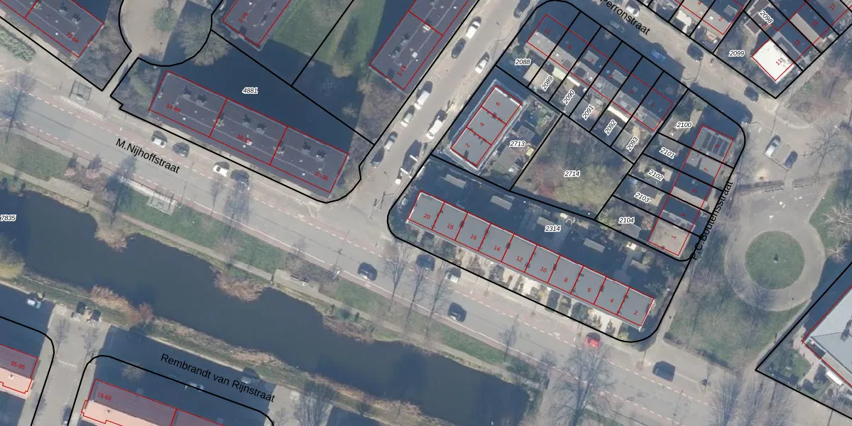Het perceel waarop M.Nijhoffstraat 20 staat heeft een oppervlakte van 1450 m². Dit is een zeer groot perceel. De perceeloppervlakte wordt geregistreerd door het Kadaster. Gedetailleerde informatie over de maten van dit perceel kunt u vinden in het rapport Kadastrale kaart met maatvoering van M.Nijhoffstraat 20.