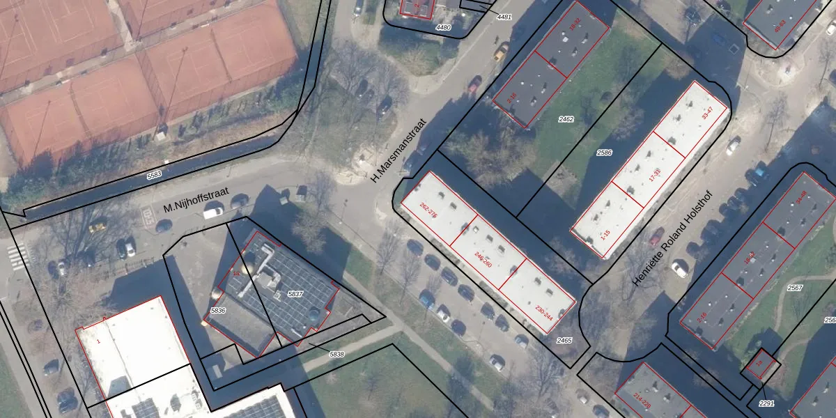 Het perceel waarop M.Nijhoffstraat 270 staat heeft een oppervlakte van 1007 m². Dit is een zeer groot perceel. De perceeloppervlakte wordt geregistreerd door het Kadaster. Gedetailleerde informatie over de maten van dit perceel kunt u vinden in het rapport Kadastrale kaart met maatvoering van M.Nijhoffstraat 270.