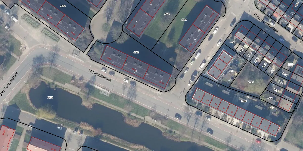 Het perceel waarop M.Nijhoffstraat 32 staat heeft een oppervlakte van 1194 m². Dit is een zeer groot perceel. De perceeloppervlakte wordt geregistreerd door het Kadaster. Gedetailleerde informatie over de maten van dit perceel kunt u vinden in het rapport Kadastrale kaart met maatvoering van M.Nijhoffstraat 32.