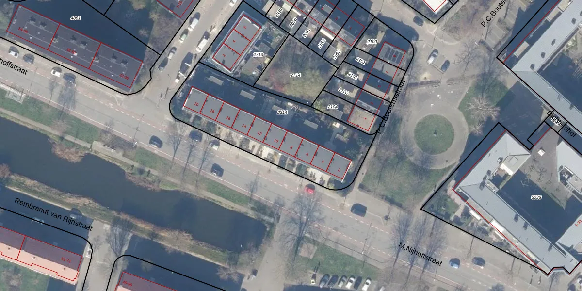 Het perceel waarop M.Nijhoffstraat 8 staat heeft een oppervlakte van 1450 m². Dit is een zeer groot perceel. De perceeloppervlakte wordt geregistreerd door het Kadaster. Gedetailleerde informatie over de maten van dit perceel kunt u vinden in het rapport Kadastrale kaart met maatvoering van M.Nijhoffstraat 8.
