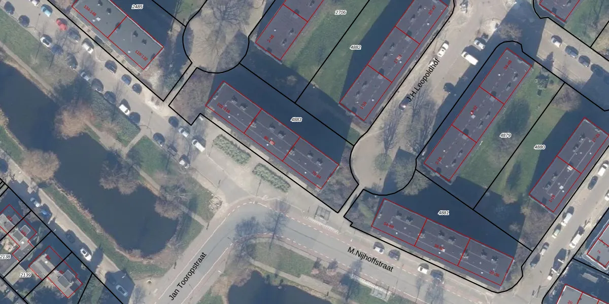 Het perceel waarop M.Nijhoffstraat 82 staat heeft een oppervlakte van 1317 m². Dit is een zeer groot perceel. De perceeloppervlakte wordt geregistreerd door het Kadaster. Gedetailleerde informatie over de maten van dit perceel kunt u vinden in het rapport Kadastrale kaart met maatvoering van M.Nijhoffstraat 82.