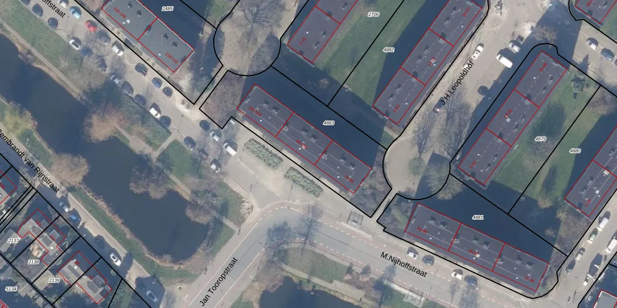 Het perceel waarop M.Nijhoffstraat 86 staat heeft een oppervlakte van 1317 m². Dit is een zeer groot perceel. De perceeloppervlakte wordt geregistreerd door het Kadaster. Gedetailleerde informatie over de maten van dit perceel kunt u vinden in het rapport Kadastrale kaart met maatvoering van M.Nijhoffstraat 86.
