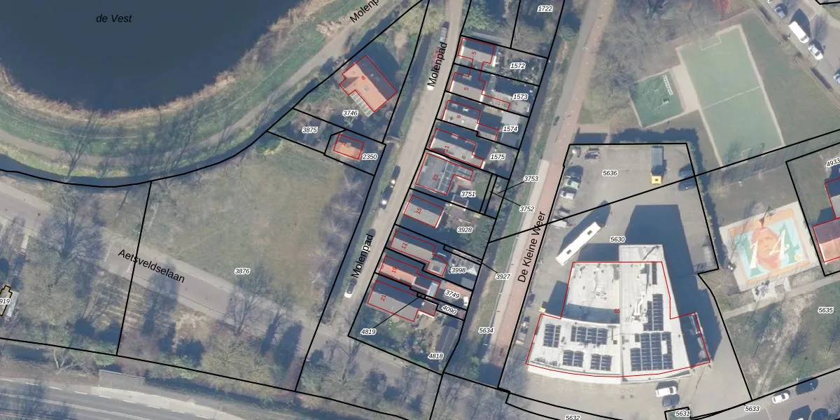Het perceel waarop Molenpad 15 staat heeft een oppervlakte van 213 m². Dit is een middelgroot perceel. De perceeloppervlakte wordt geregistreerd door het Kadaster. Gedetailleerde informatie over de maten van dit perceel kunt u vinden in het rapport Kadastrale kaart met maatvoering van Molenpad 15.
