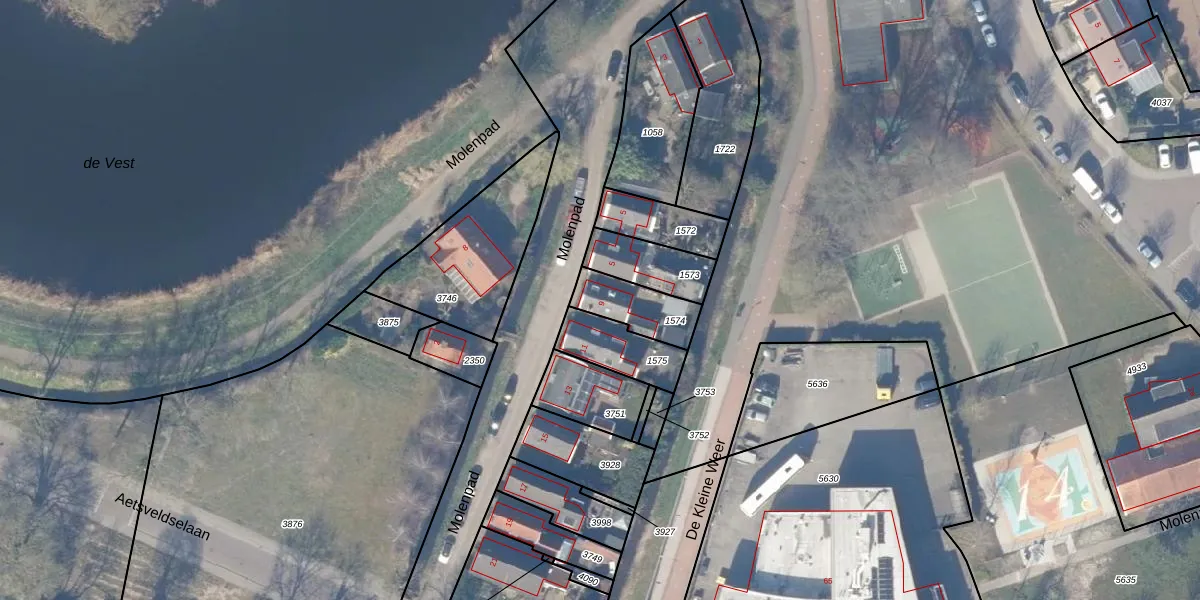 Het perceel waarop Molenpad 9 staat heeft een oppervlakte van 150 m². Dit is een middelgroot perceel. De perceeloppervlakte wordt geregistreerd door het Kadaster. Gedetailleerde informatie over de maten van dit perceel kunt u vinden in het rapport Kadastrale kaart met maatvoering van Molenpad 9.