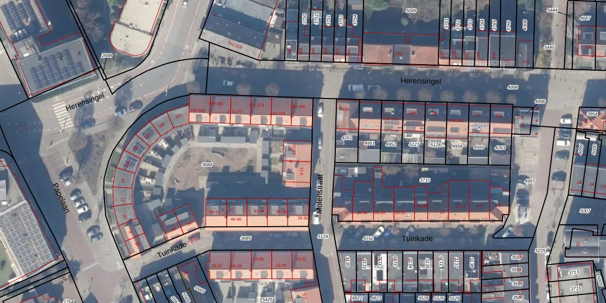 Het perceel waarop Molenstraat 15 staat heeft een oppervlakte van 2890 m². Dit is een zeer groot perceel. De perceeloppervlakte wordt geregistreerd door het Kadaster. Gedetailleerde informatie over de maten van dit perceel kunt u vinden in het rapport Kadastrale kaart met maatvoering van Molenstraat 15.