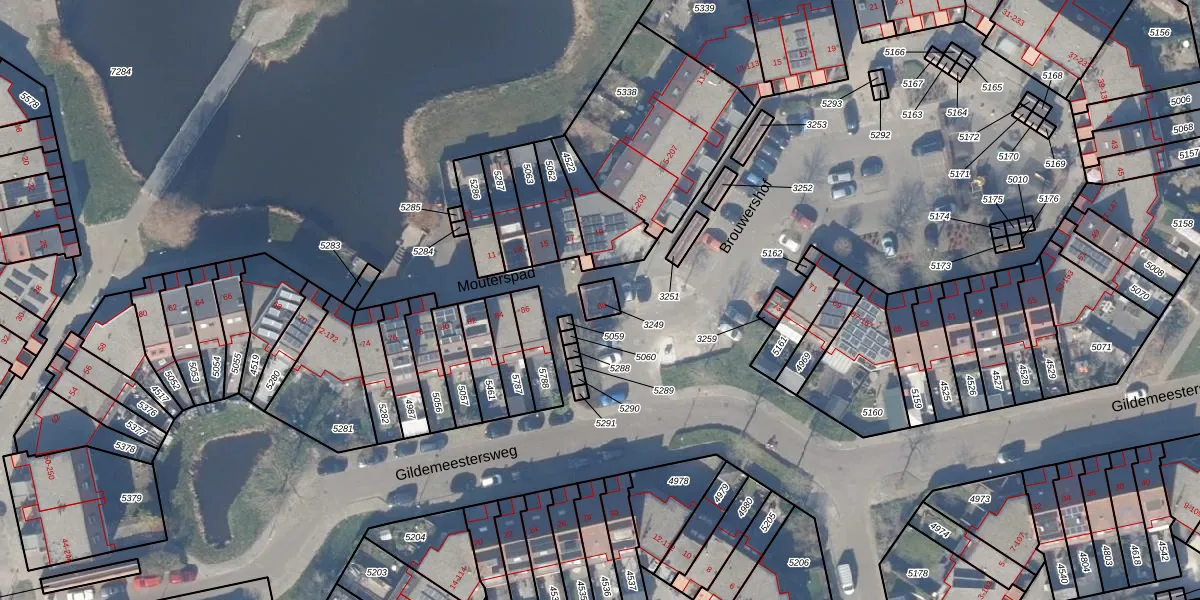 Gebruik de zoekbalk of klik op een perceel voor informatie over de adressen binnen dit perceel.