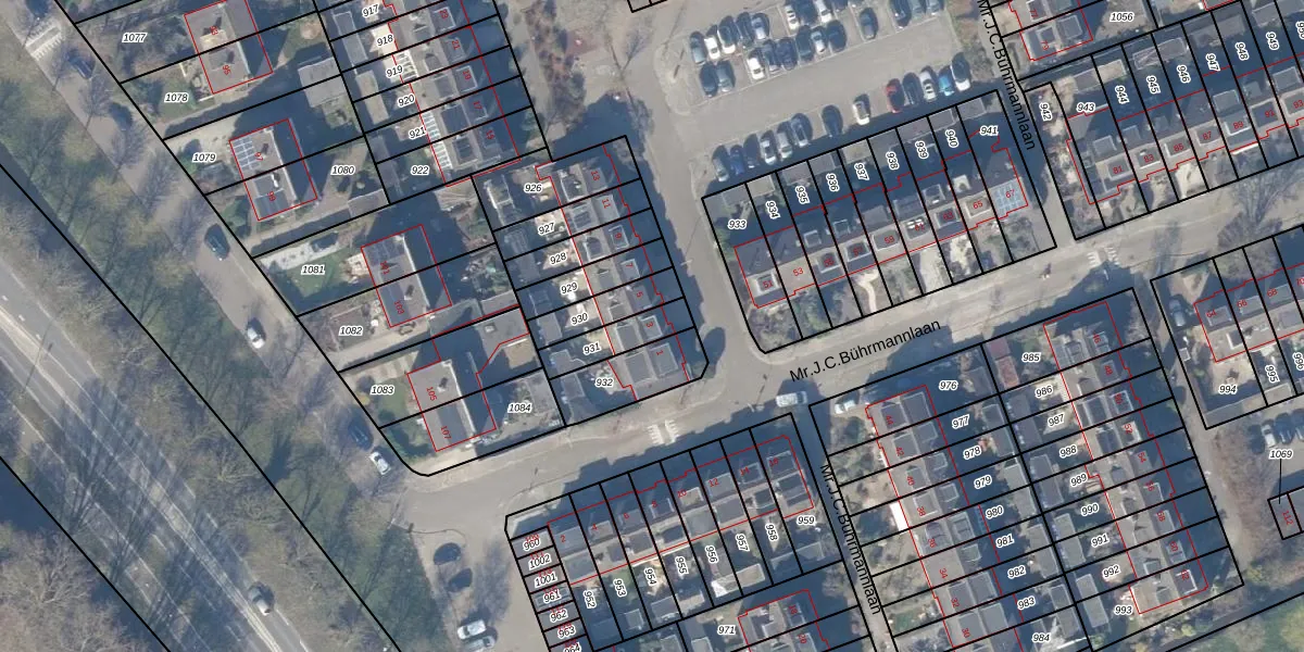 Gebruik de zoekbalk of klik op een perceel voor informatie over de adressen binnen dit perceel.