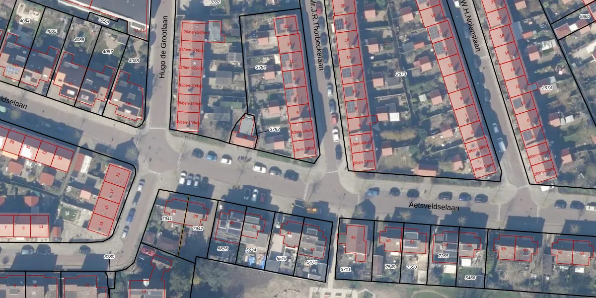 Het perceel waarop Mr.J.R.Thorbeckelaan 1-bov staat heeft een oppervlakte van 1045 m². Dit is een zeer groot perceel. De perceeloppervlakte wordt geregistreerd door het Kadaster. Gedetailleerde informatie over de maten van dit perceel kunt u vinden in het rapport Kadastrale kaart met maatvoering van Mr.J.R.Thorbeckelaan 1-bov.