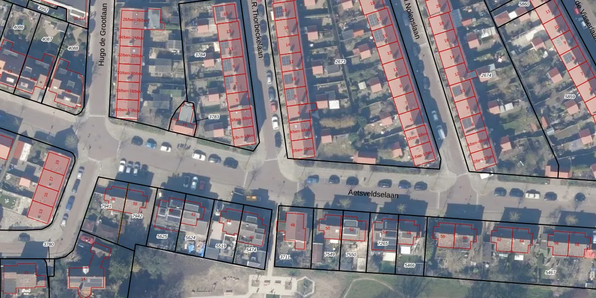 Het perceel waarop Mr.J.R.Thorbeckelaan 2-ben staat heeft een oppervlakte van 2931 m². Dit is een zeer groot perceel. De perceeloppervlakte wordt geregistreerd door het Kadaster. Gedetailleerde informatie over de maten van dit perceel kunt u vinden in het rapport Kadastrale kaart met maatvoering van Mr.J.R.Thorbeckelaan 2-ben.