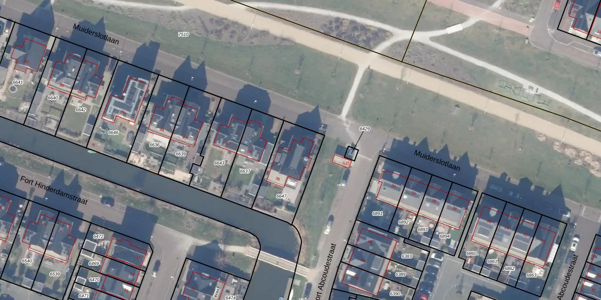 Muiderslotlaan 36 is gelegen op kadastraal perceel WEE02B6647. Deze kadastrale aanduiding is uniek en wordt gebruikt door het Kadaster om eigendomsrechten en andere zakelijke rechten vast te leggen. Het perceel maakt onderdeel uit van de kadastrale gemeente Weesp.