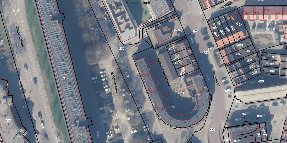 Het perceel waarop Nelson Mandelahof 29 staat heeft een oppervlakte van 1852 m². Dit is een zeer groot perceel. De perceeloppervlakte wordt geregistreerd door het Kadaster. Gedetailleerde informatie over de maten van dit perceel kunt u vinden in het rapport Kadastrale kaart met maatvoering van Nelson Mandelahof 29.