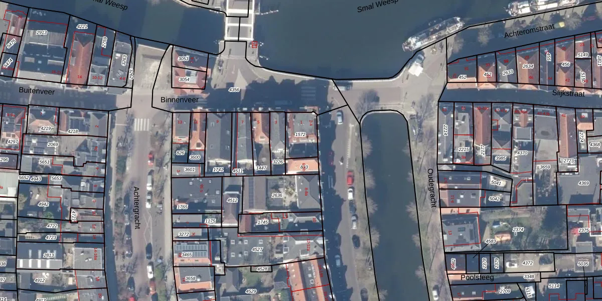 Het adres is gelegen op perceel 1572 in de sectie A en de kadastrale gemeente Weesp. De kadastrale aanduiding is aldus WEE02-A-1572. De gemiddelde perceelgrootte in Weesp is 2523,05 m². Dit perceel is kleiner: de perceeloppervlakte bedraagt 145 m². De grootste perceeloppervlakte in de kadastrale gemeente is 27,8 ha. De kleinste oppervlakte bedraagt 0 m². Op het perceel liggen in totaal 7 adressen. In de Basisregistratie Kadaster (BRK) werden de grenzen van het perceel geregistreerd op 01-11-2006.