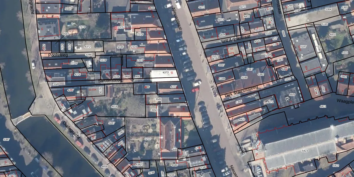 Gebruik de zoekbalk of klik op een perceel voor informatie over de adressen binnen dit perceel.