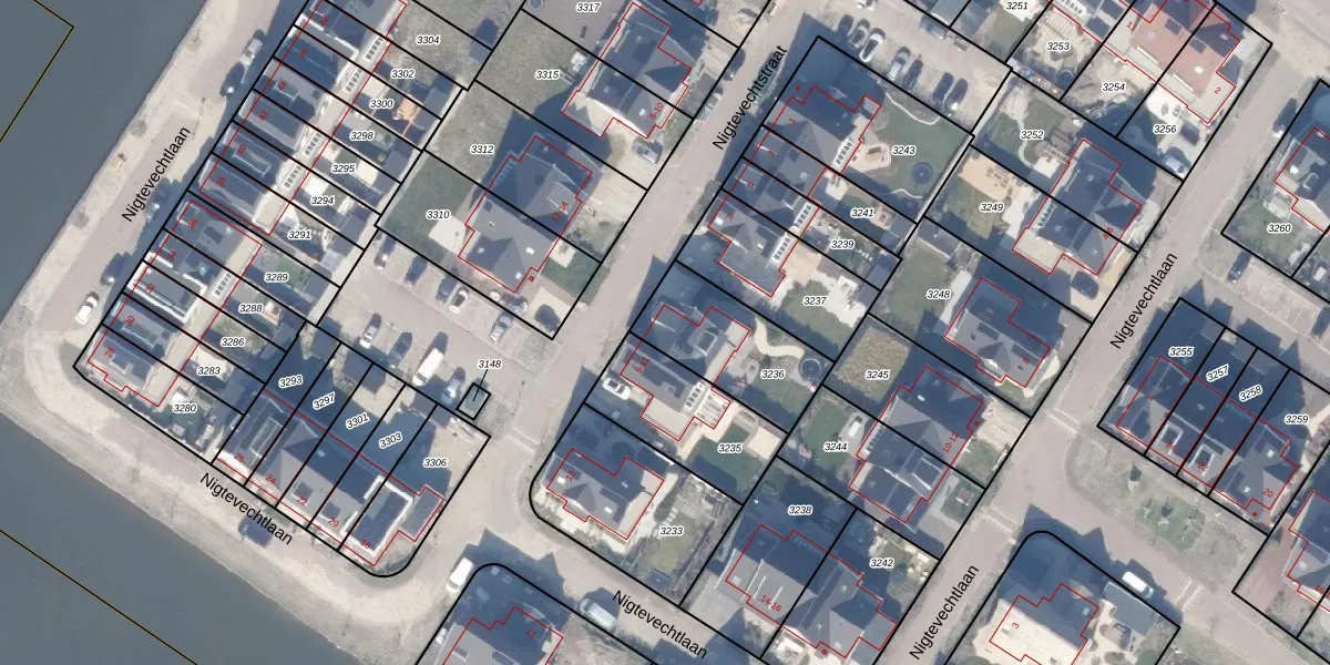 Het perceel waarop Nigtevechtstraat 9 staat heeft een oppervlakte van 365 m². Dit is een groot perceel. De perceeloppervlakte wordt geregistreerd door het Kadaster. Gedetailleerde informatie over de maten van dit perceel kunt u vinden in het rapport Kadastrale kaart met maatvoering van Nigtevechtstraat 9.