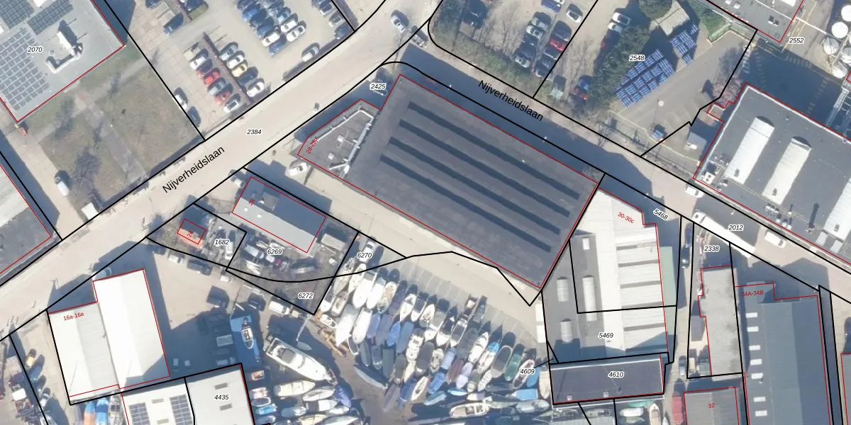 Het perceel waarop Nijverheidslaan 28-m staat heeft een oppervlakte van 2440 m². Dit is een zeer groot perceel. De perceeloppervlakte wordt geregistreerd door het Kadaster. Gedetailleerde informatie over de maten van dit perceel kunt u vinden in het rapport Kadastrale kaart met maatvoering van Nijverheidslaan 28-m.