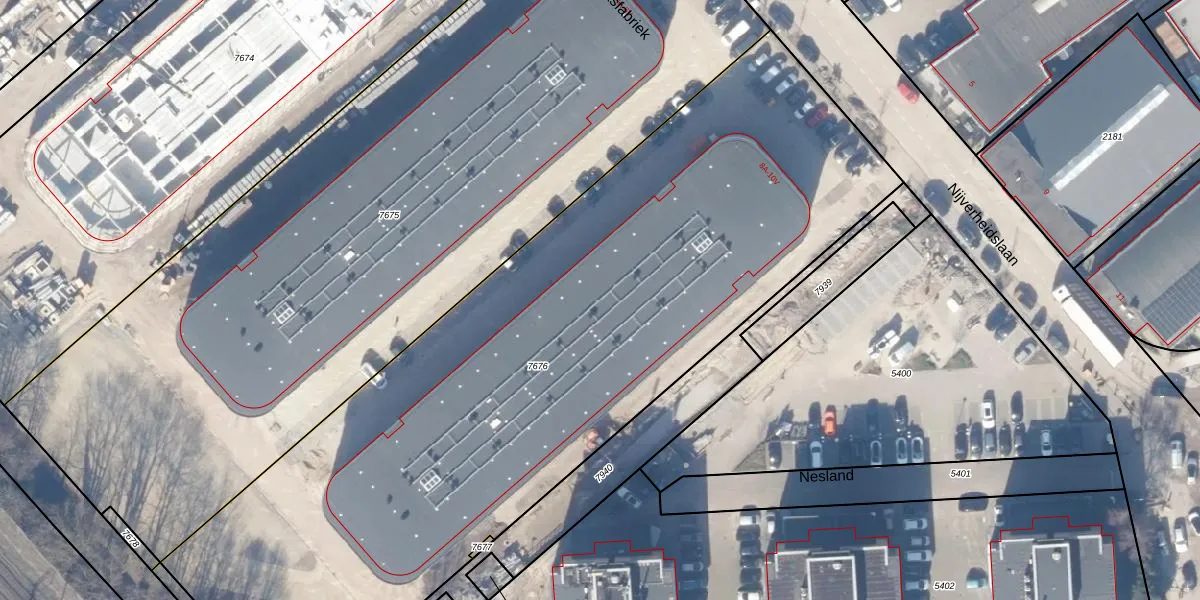 Het perceel waarop Nijverheidslaan 8-M staat heeft een oppervlakte van 4444 m². Dit is een zeer groot perceel. De perceeloppervlakte wordt geregistreerd door het Kadaster. Gedetailleerde informatie over de maten van dit perceel kunt u vinden in het rapport Kadastrale kaart met maatvoering van Nijverheidslaan 8-M.