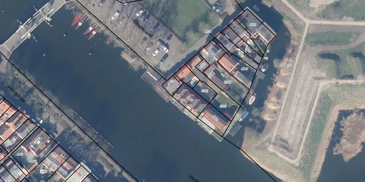 Het perceel waarop Ossenmarkt 12 staat heeft een oppervlakte van 185 m². Dit is een middelgroot perceel. De perceeloppervlakte wordt geregistreerd door het Kadaster. Gedetailleerde informatie over de maten van dit perceel kunt u vinden in het rapport Kadastrale kaart met maatvoering van Ossenmarkt 12.