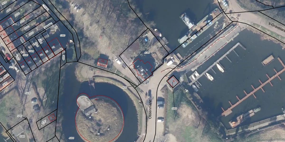 Het perceel waarop Ossenmarkt 32 staat heeft een oppervlakte van 685 m². Dit is een groot perceel. De perceeloppervlakte wordt geregistreerd door het Kadaster. Gedetailleerde informatie over de maten van dit perceel kunt u vinden in het rapport Kadastrale kaart met maatvoering van Ossenmarkt 32.