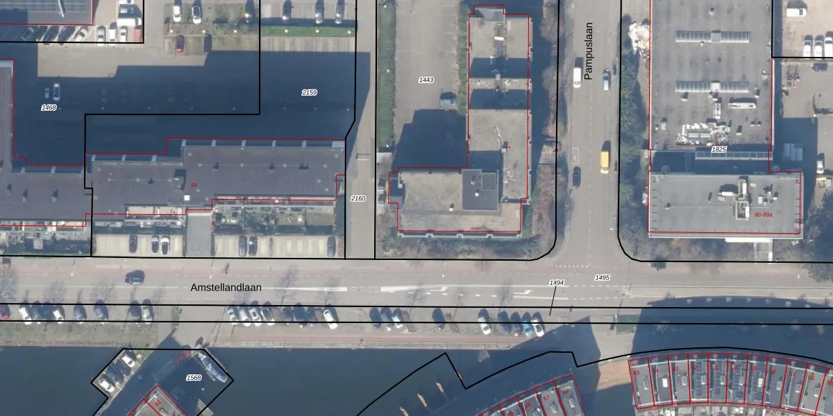 Pampuslaan 1-E is gelegen op kadastraal perceel WEE02C1443. Deze kadastrale aanduiding is uniek en wordt gebruikt door het Kadaster om eigendomsrechten en andere zakelijke rechten vast te leggen. Het perceel maakt onderdeel uit van de kadastrale gemeente Weesp.