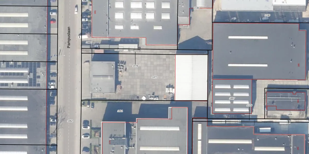 Het perceel waarop Pampuslaan 172-E staat heeft een oppervlakte van 2480 m². Dit is een zeer groot perceel. De perceeloppervlakte wordt geregistreerd door het Kadaster. Gedetailleerde informatie over de maten van dit perceel kunt u vinden in het rapport Kadastrale kaart met maatvoering van Pampuslaan 172-E.