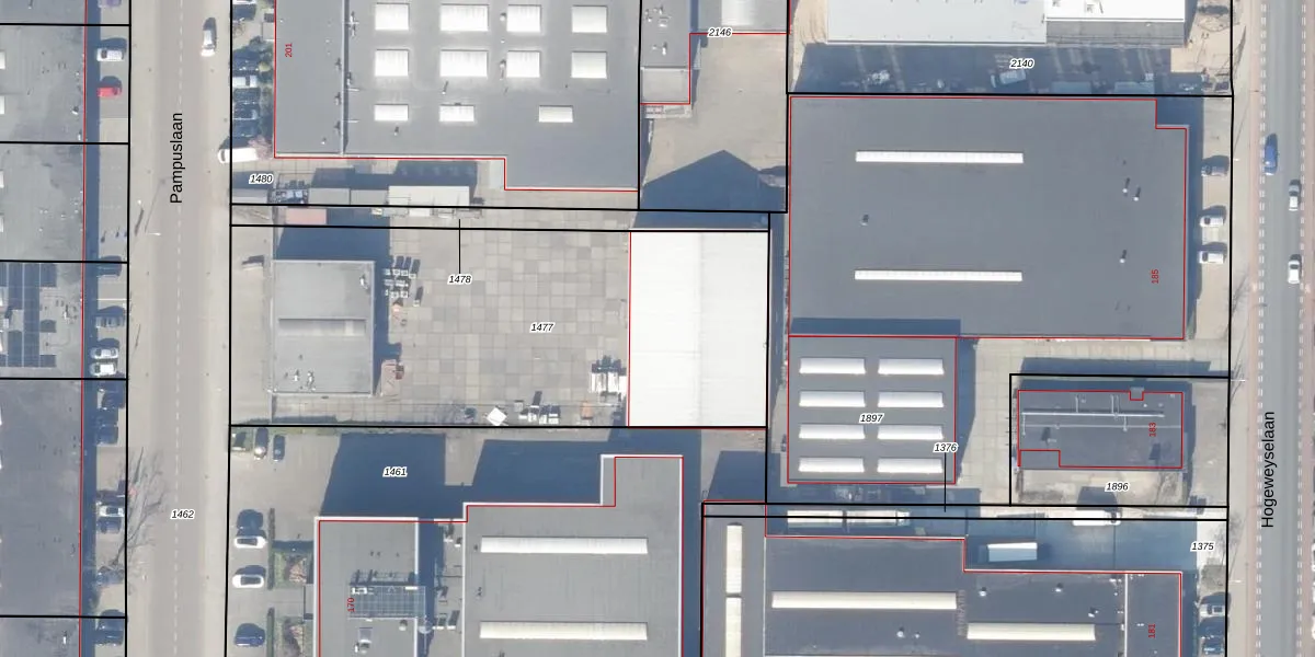 Het perceel waarop Pampuslaan 172-G staat heeft een oppervlakte van 2480 m². Dit is een zeer groot perceel. De perceeloppervlakte wordt geregistreerd door het Kadaster. Gedetailleerde informatie over de maten van dit perceel kunt u vinden in het rapport Kadastrale kaart met maatvoering van Pampuslaan 172-G.