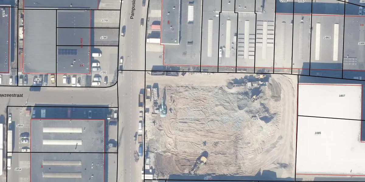 Het perceel waarop Pampuslaan 186-D-8 staat heeft een oppervlakte van 4960 m². Dit is een zeer groot perceel. De perceeloppervlakte wordt geregistreerd door het Kadaster. Gedetailleerde informatie over de maten van dit perceel kunt u vinden in het rapport Kadastrale kaart met maatvoering van Pampuslaan 186-D-8.