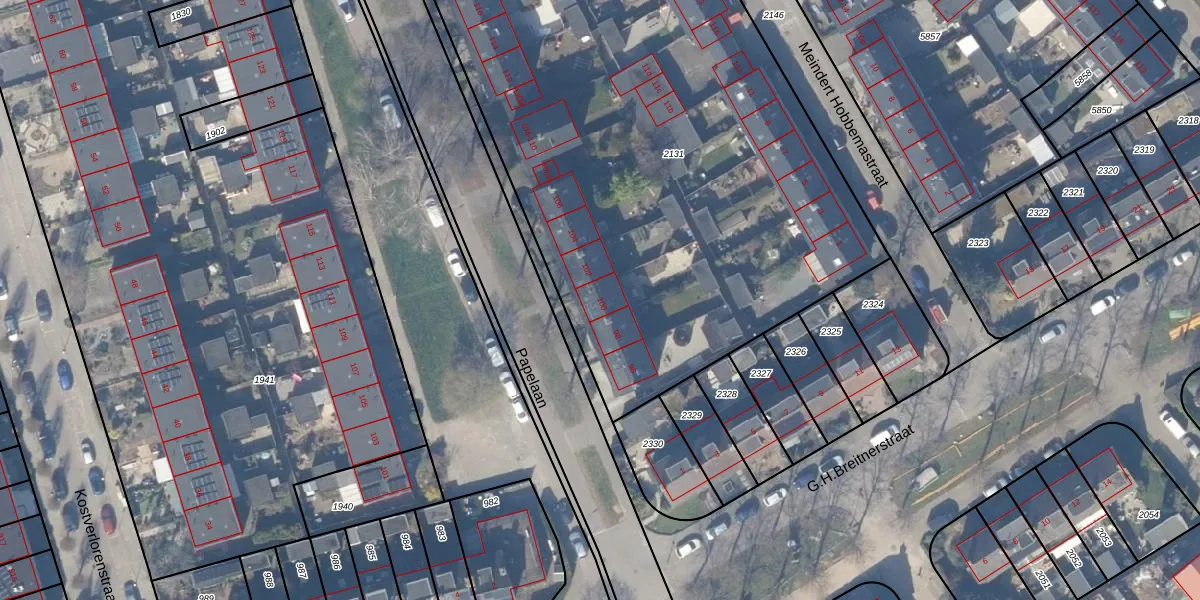 Het perceel waarop Papelaan 100 staat heeft een oppervlakte van 4350 m². Dit is een zeer groot perceel. De perceeloppervlakte wordt geregistreerd door het Kadaster. Gedetailleerde informatie over de maten van dit perceel kunt u vinden in het rapport Kadastrale kaart met maatvoering van Papelaan 100.
